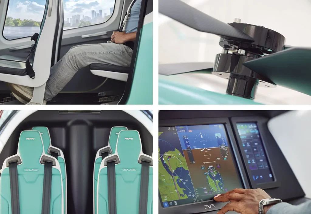 O modelo desenvolvido pela Eve é um eVTOL, uma aeronave elétrica que combina características de avião e helicóptero. Ele consegue decolar e pousar verticalmente, mas realiza o voo principal na horizontal, como um avião.