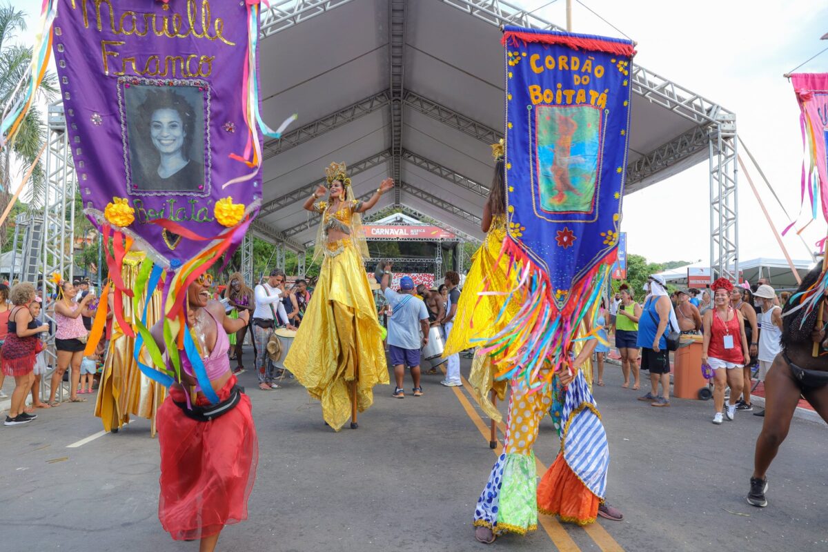 Conhecido por arrastar multidões na capital fluminense, o grupo levou para Maricá uma apresentação vibrante, reforçando a proposta de descentralizar a festa e aproximar a cultura carnavalesca dos bairros.