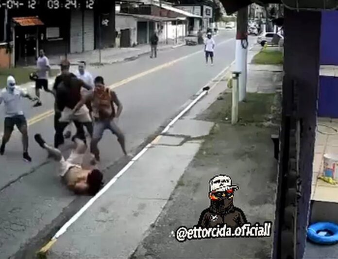 Imagens de câmeras de segurança registraram o momento da confusão, com agressões, gritos e correria. Em meio ao confronto, alguns envolvidos chegaram a usar objetos, enquanto outras pessoas tentavam se afastar ou conter a situação.