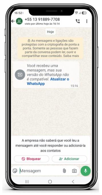 “Você recebeu uma mensagem, mas sua versão do WhatsApp não é compatível.”