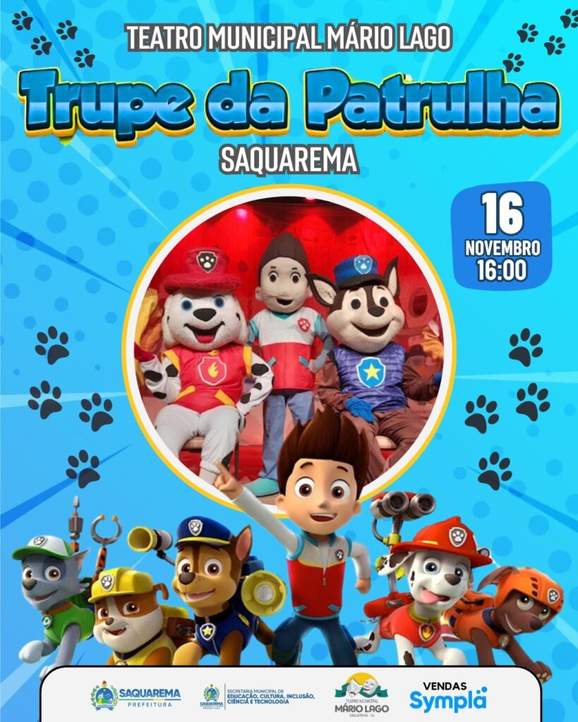O fim de semana vai ser cheio de diversão para a criançada em Saquarema! No domingo, 16 de novembro, às 16h, o Teatro Municipal Mário Lago recebe o espetáculo “Trupe da Patrulha”, uma montagem cheia de ação, música e risadas.