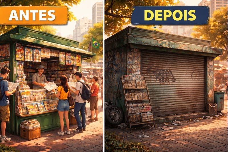 E você, já comprou algo em uma banca de jornal? Acha que elas ainda têm espaço nos dias de hoje? Gostou do assunto, comente aqui em baixo? Compartilha com os amigos e bora continuar essa conversa! 🗞️✨