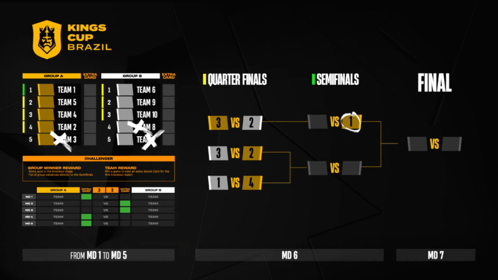 - Os 10 times brasileiros da Kings League Brasil foram divididos em dois grupos de cinco clubes.
