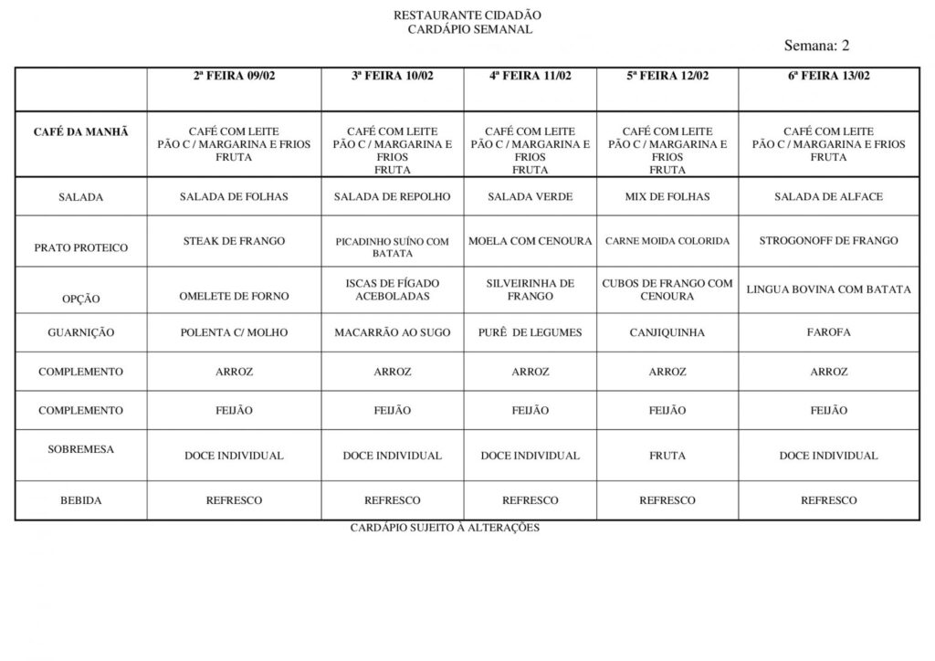 O café da manhã custa R$ 1, enquanto o almoço sai por apenas R$ 2. A proposta do restaurante é garantir alimentação de qualidade, com opções variadas ao longo da semana. A secretaria informa que o cardápio pode sofrer ajustes pontuais, conforme a disponibilidade dos alimentos.