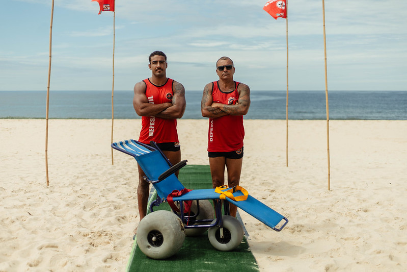 Para tornar o momento possível, foi montada uma estrutura acessível na praia, com esteiras ecológicas sobre a areia, tendas de apoio, guarda-sóis e uma cadeira anfíbia, que flutua na água e permite o acesso ao mar. Durante todo o banho, os participantes foram acompanhados de perto, garantindo conforto e segurança.