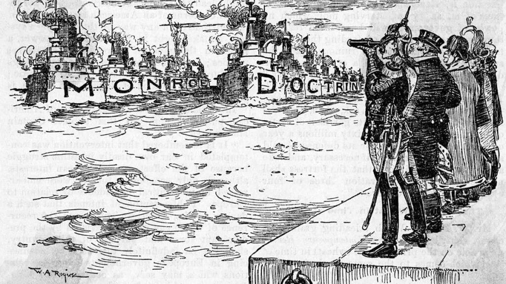 Criada em 1823, a Doutrina Monroe definiu a América Latina como zona de interesse estratégico dos Estados Unidos. Na prática, a mensagem era clara:
