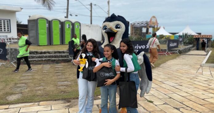 No último sábado (11), Alícia Rodrigues, Alice Gaudard e Luisa Rocha, todas com apenas 10 anos, foram convidadas a acompanhar de perto os bastidores do campeonato internacional de surf. Elas visitaram a área de jurados, o centro de transmissão, a sala de imprensa e ainda entrevistaram o presidente da WSL América Latina, Ivan Martinho.