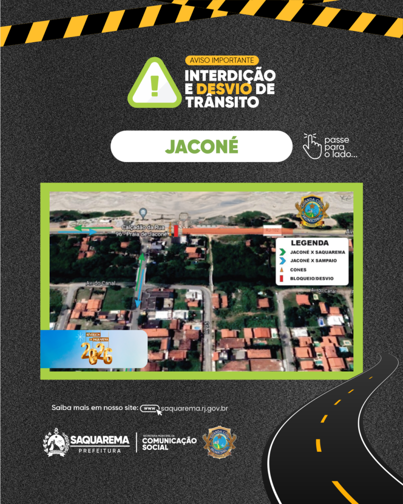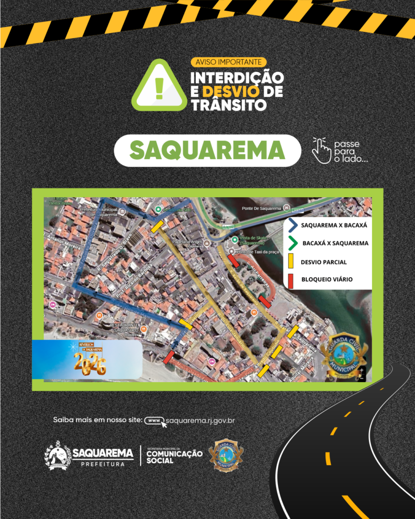 Quem vai curtir a virada do ano em Saquarema precisa ficar ligado 🚦. Por causa das festas de Réveillon, a cidade terá alterações no trânsito em Saquarema, Vilatur, Sampaio Corrêa e Jaconé. A ideia é reforçar a segurança dos pedestres e evitar congestionamentos nos pontos de shows.