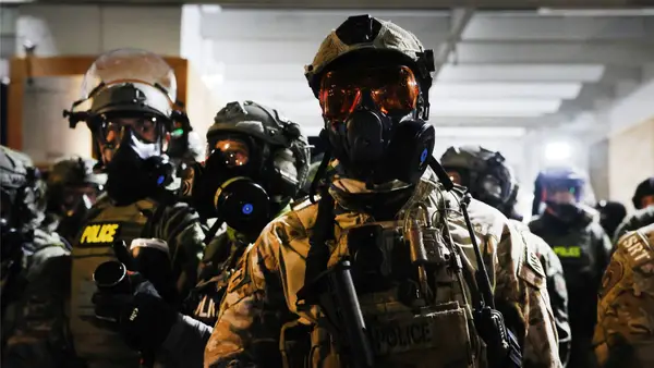 Ações da polícia de imigração dos Estados Unidos (ICE) motivaram protestos e cenas em Roblox. Imagem: Getty/Spencer Platt.