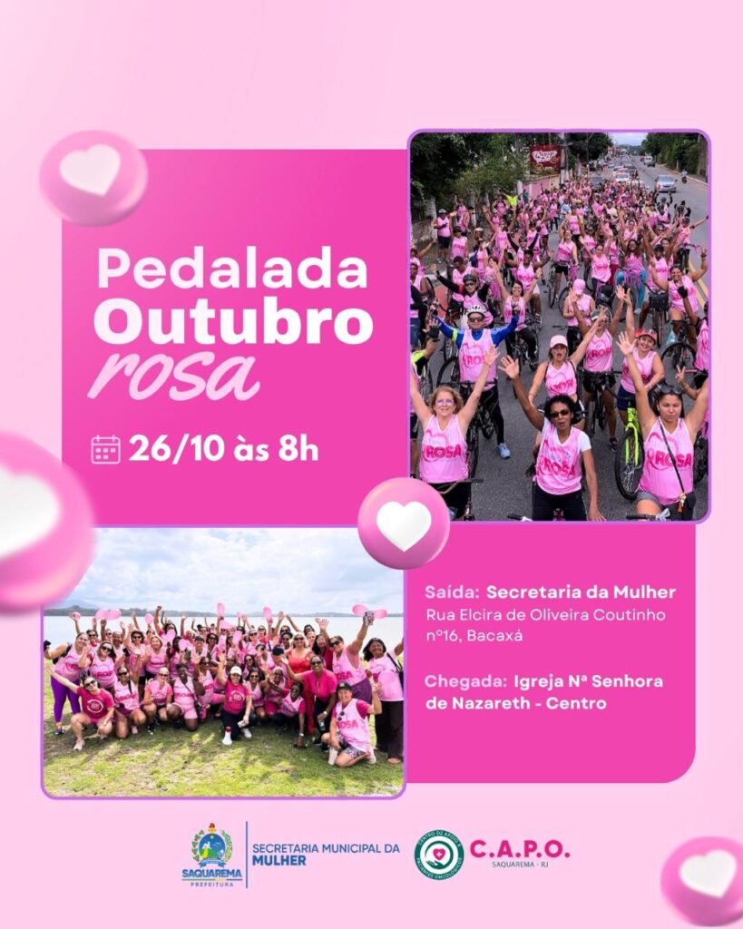 A Prefeitura de Saquarema convida todos a participarem, vestir o rosa e fazer parte dessa corrente de conscientização que salva vidas — pedalando por quem luta, por quem venceu e por quem ainda vai vencer.