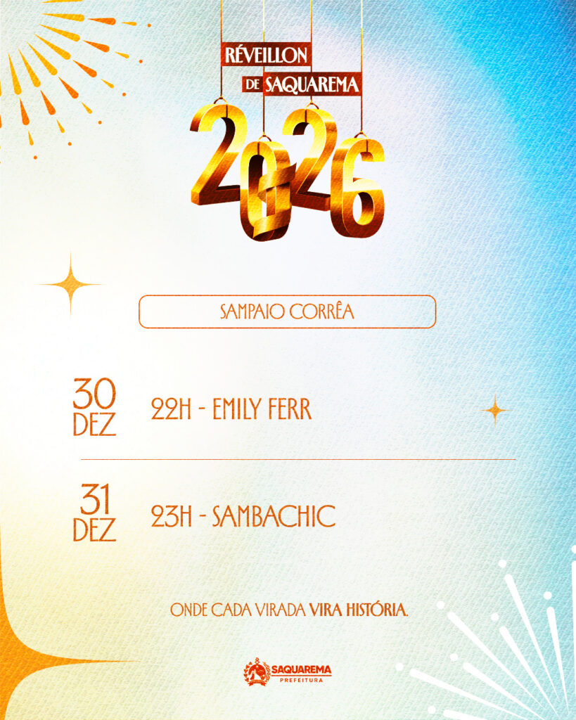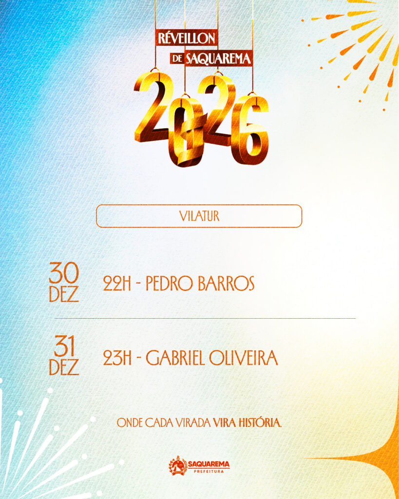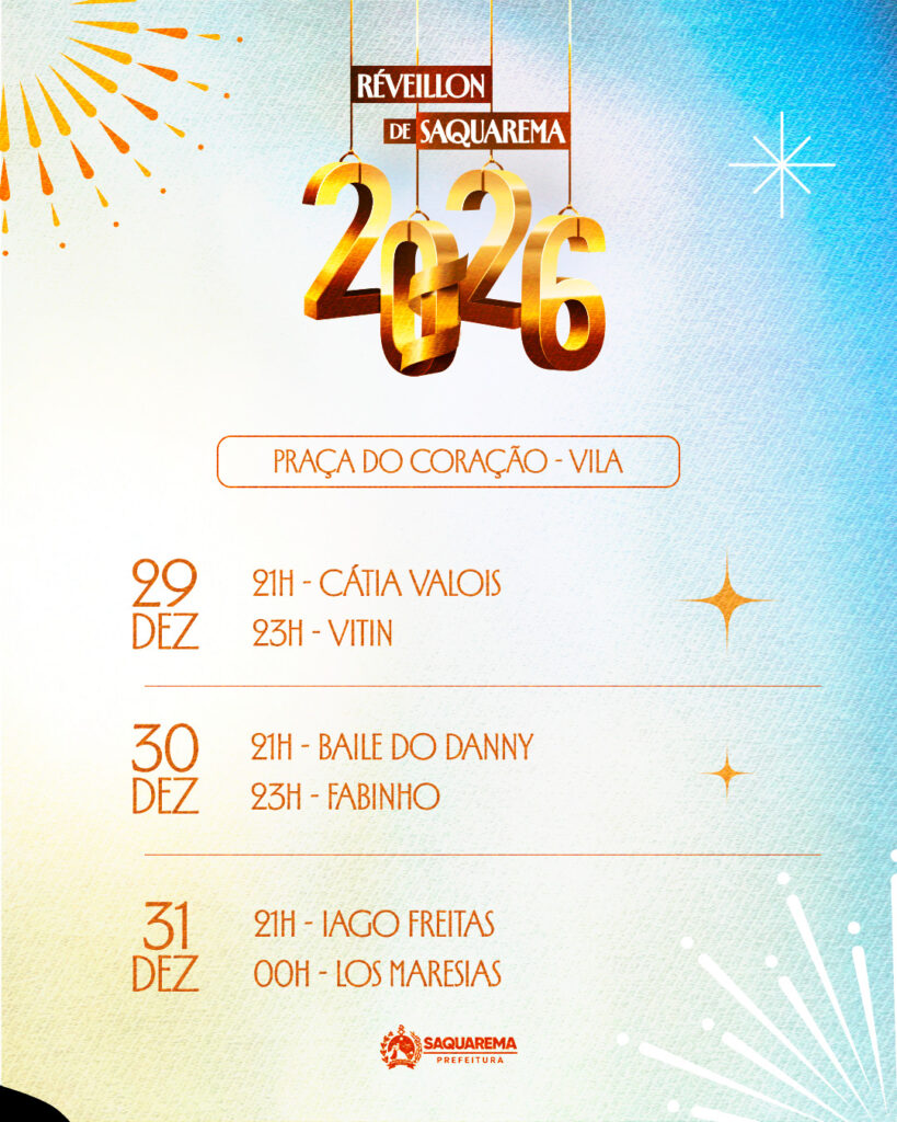 A chegada de 2026 promete ser animada em Saquarema. A prefeitura organizou uma programação especial de Réveillon, com shows gratuitos em quatro bairros, além da tradicional queima de fogos em um dos cartões-postais da cidade. As celebrações começam no dia 29 de dezembro e seguem até a virada do ano.